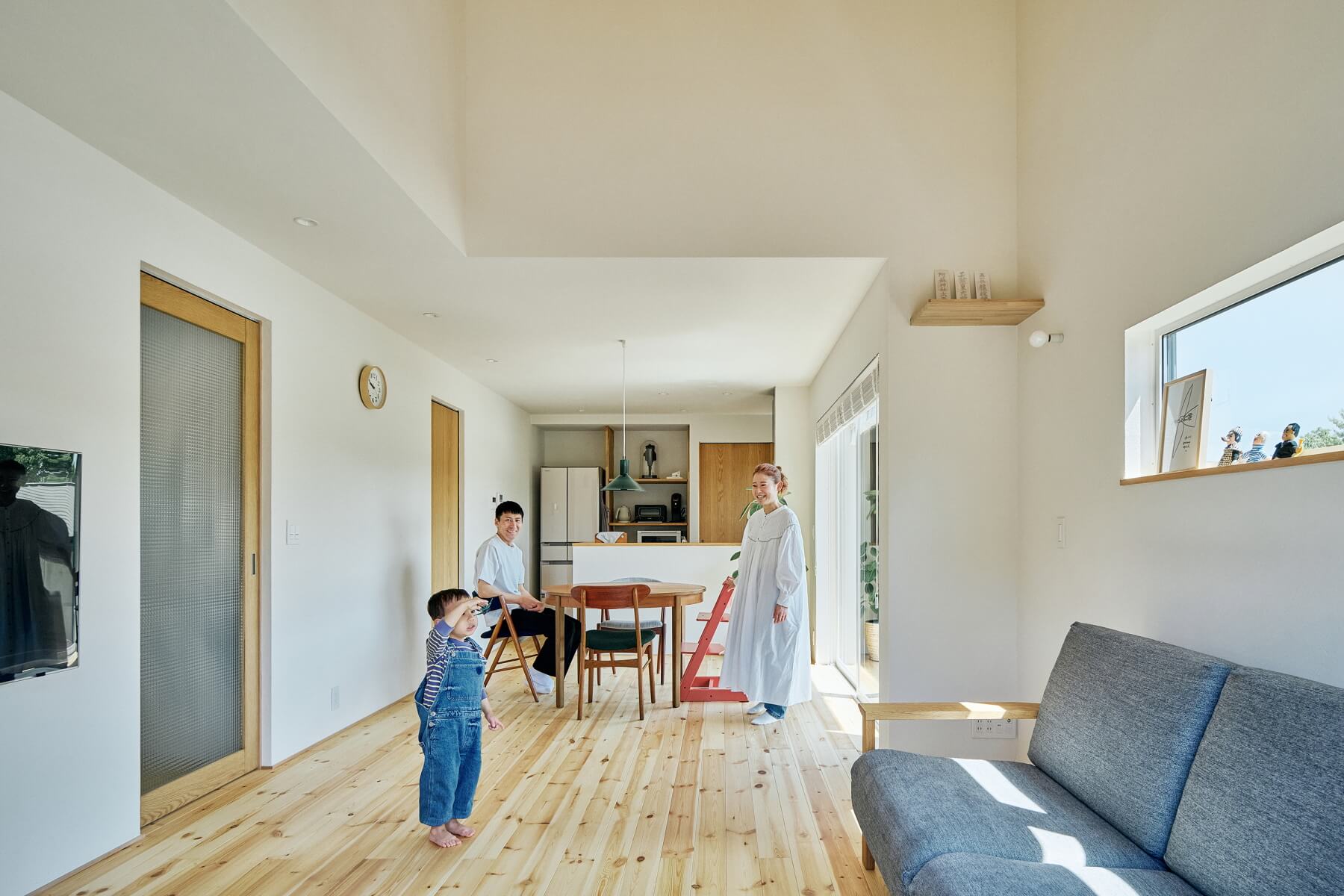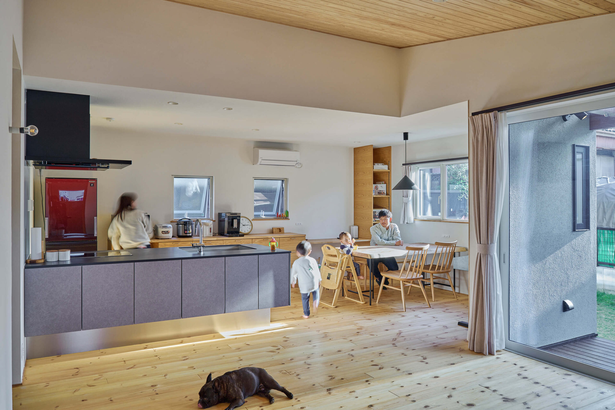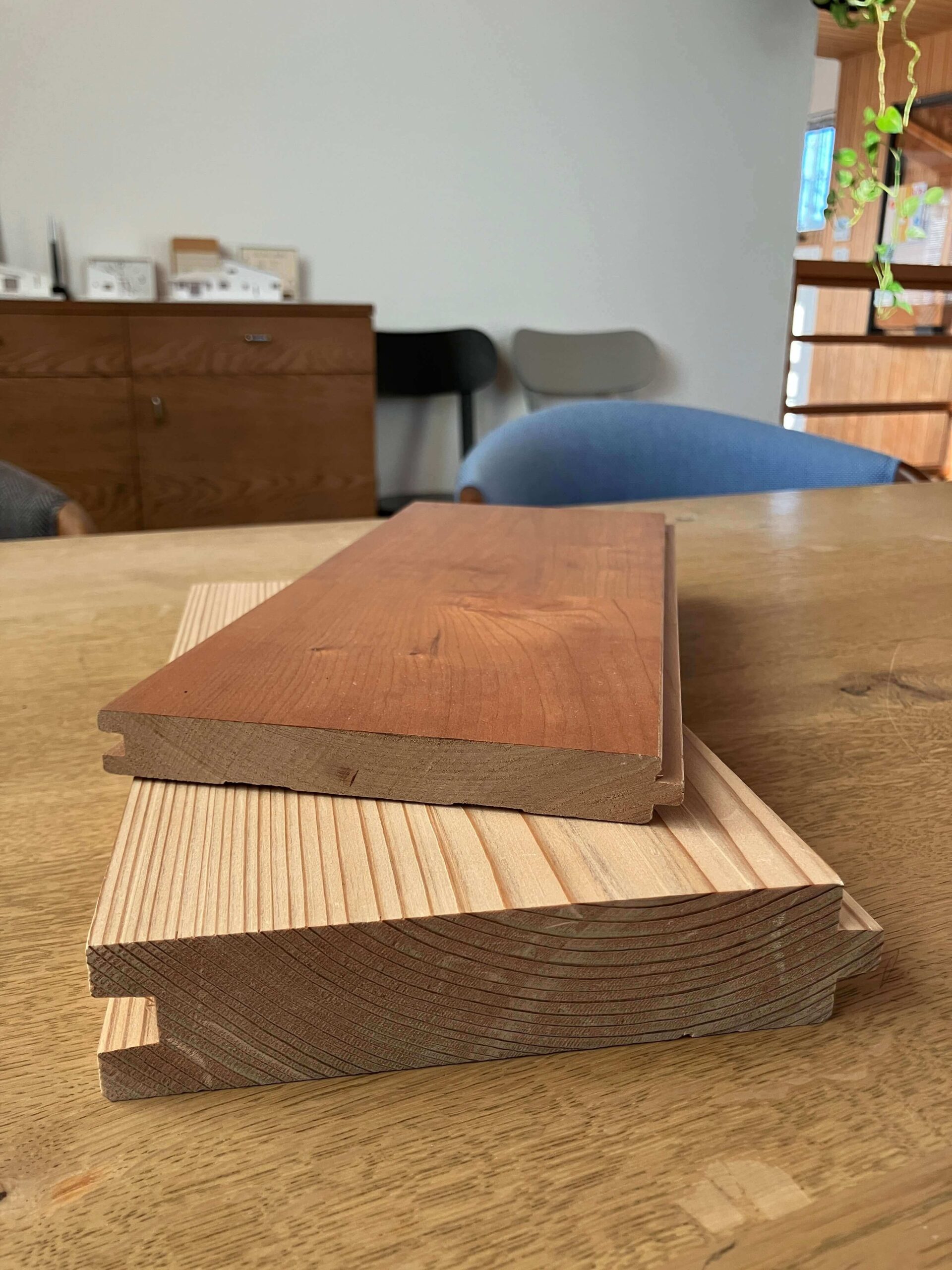 また板材は反ったり割れたりするのではと心配される方もいますが、それは建築会社の材料選定の問題と大工さんの知識と技術の問題だと思います。季節によって伸びたり縮んだりはしますが、まずは質の悪いものは使わないことが当たり前。また木が動くことを見据えて寸法を考えて張ることで何も問題は起こらないはずです。