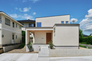 スチール階段と吹抜けとモルタルテラス/半田市