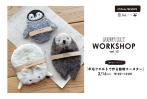 前の投稿前 マンスリーワークショップ第12回「羊毛フェルトの動物コースターvol.3」