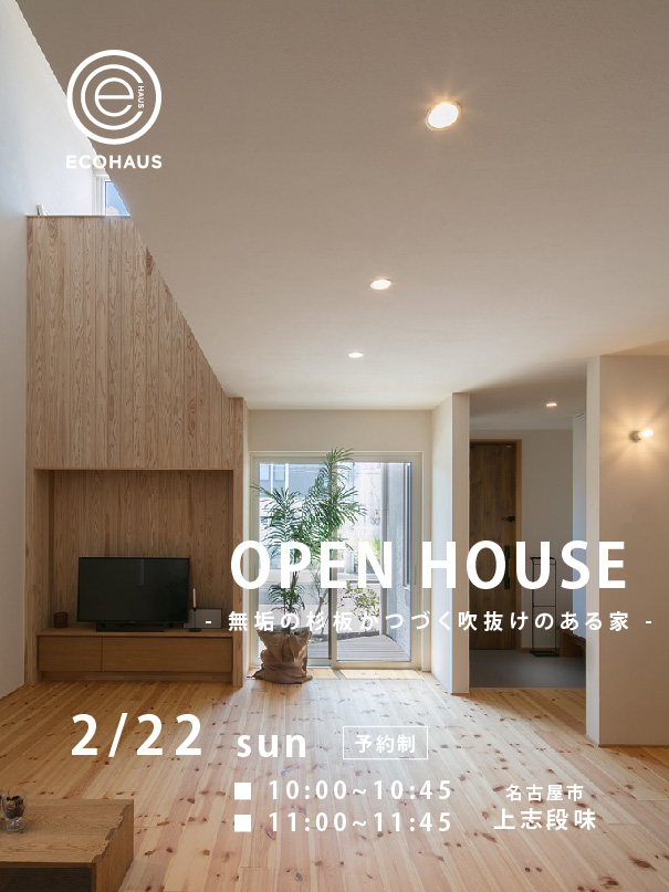 こちらの見学会は、2月22日(日)に名古屋市の上志段味にて開催いたします。