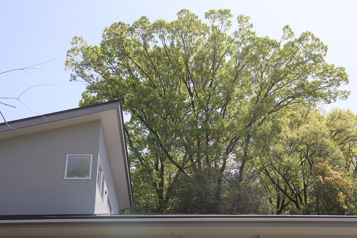 林に凛として佇む、半平屋の住まいが完成しました。